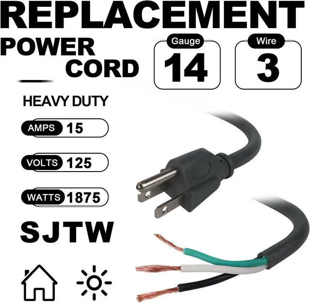 Temperature Range: -40°F to +140°F flexible vinyl jacket protects cords against moisture abrasion and direct sunlight. Wide Application - This Replacement Cord is Perfect for Powering Everything From Air Conditioners to Dishwashers Dryers Refrigerators Power Tools Lawn Mowers and More.