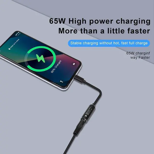 The PD65W DC4017 to USB-C charging cable enables 65W of high power charging, stable charging without getting hot, so your device is fully charged quickly.