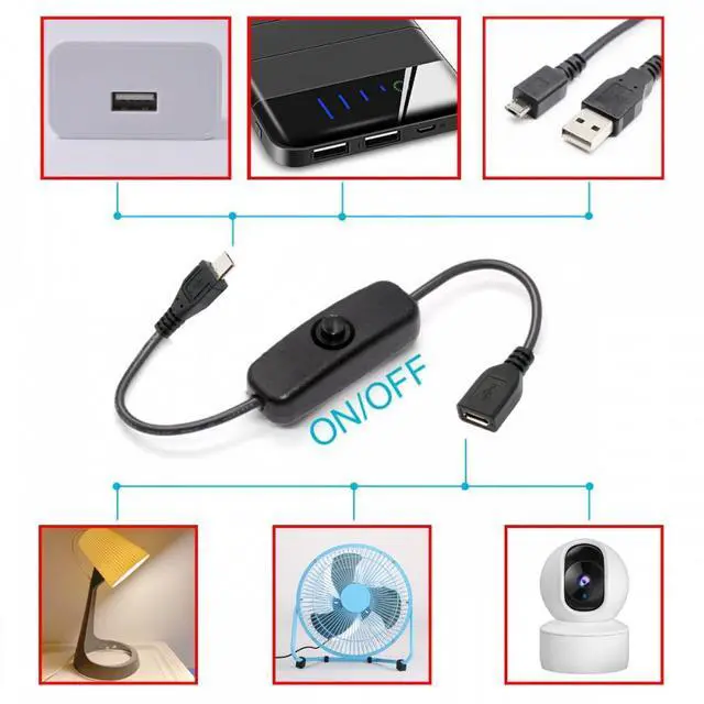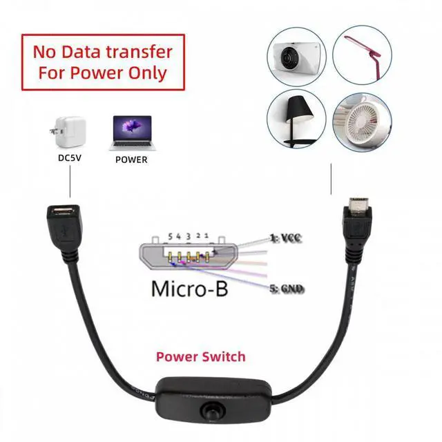 Micro USB2.0 Cable with On Off Power Switch Button Micro 5Pin Male to Female for DC 5V Desk Lamp Fan Camera