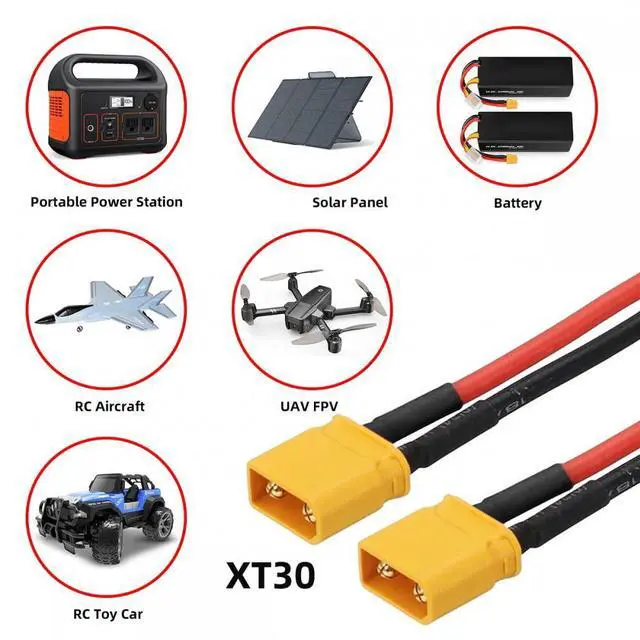 XT30 Extension Cable easily compatible for connecting and disconnecting of most battery packs are applied in portable power station, remote control toy cars, UAV,RC battery.