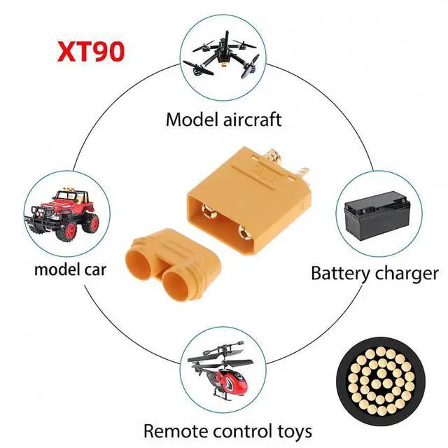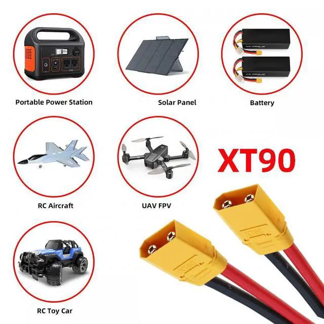 XT90 Extension Cable easily compatible for connecting and disconnecting of most battery packs are applied in portable power station, remote control toy cars, UAV,RC battery.