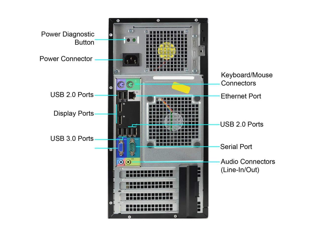 Dell Optiplex 7010 Tower Desktop PC, Intel Quad Core i5 (3.20GHz) Processor, 16GB RAM, 128GB Solid State Drive, 2TB Hard Drive, Windows 10 Pro, DVD, Keyboard, Mouse, WiFi (Renewed)