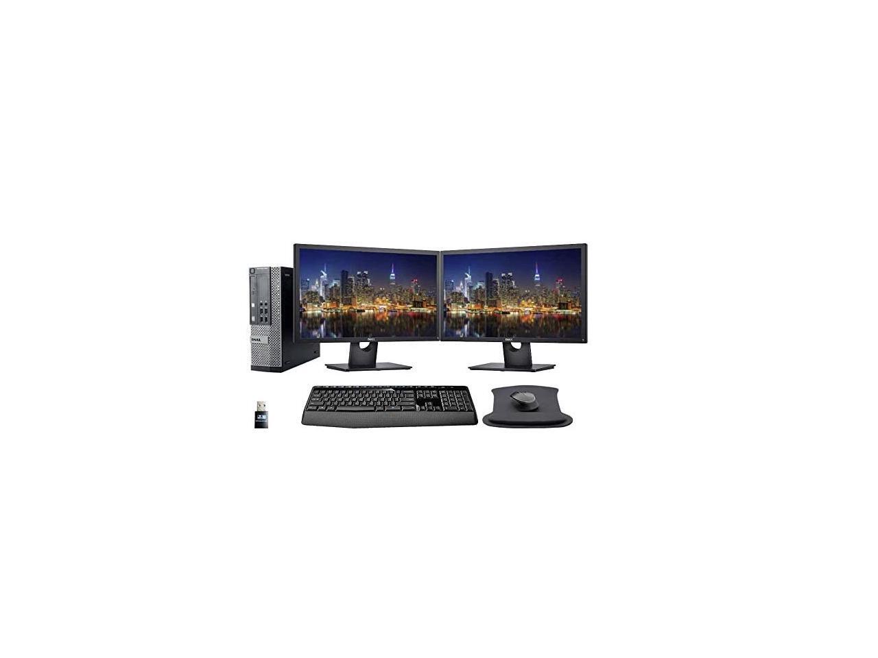 Dell Optiplex 7010 Desktop Business PC Bundle with i7-3770, 16GB DDR3, 1TB SSD, Windows 10 Pro, 2 x 24 inch Monitors with Monitor Stand, WiFi, Wireless Keyboard and Mouse, Gel Mousepad
