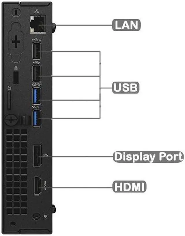 • 2 USB in Front, 4 USB in the Back, Headset Port, Microphone Port, 1 Gigabit Network Port, 1 Display Port, 1 HDMI.