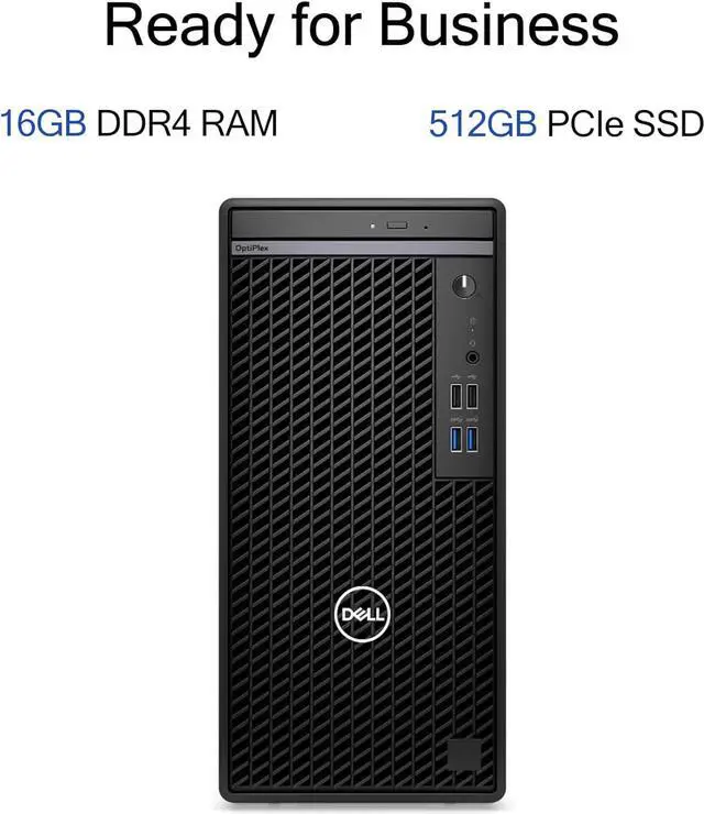 Ports & SlotsFront Ports: 1 x Universial Audio Jack, 2 x USB 2.0 Type-A, 2 x USB 3.2 Gen 1 Type-A, 1 x DVD-RW; Rear Ports: 1 x HDMI, 1 x DisplayPort, 1 x RJ-45, 2 x USB 3.2 Gen 1 Type-A, 2 x USB 2.0 Type-A; Wired KB & Mouse; Wi-Fi