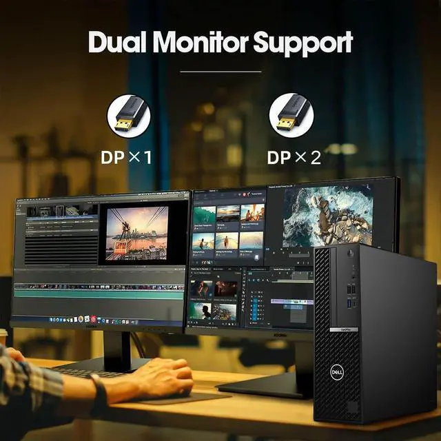 DisplayPort outputs for dual-monitor setups.