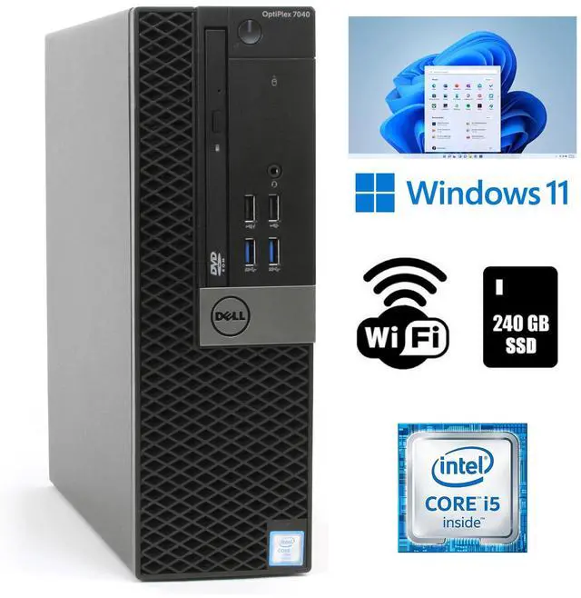 Fast refurbished Dell OptiPlex 7040 Small Form Factor Tower computer desktop with Intel Core i5-6500 6th Gen. 3.2 GHz 16GB Ram 240GB SSD and fully activated Windows 11 Pro.