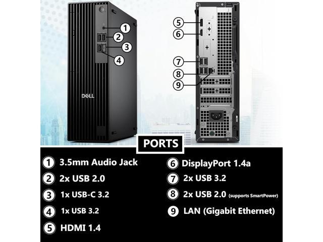 - [Ports] 4x USB 2.0, 3x USB 3.2, 1x USB-C 3.2, 1x HDMI 1.4, 1x DisplayPort 1.4a, 1x RJ-45, 1x 3.5mm Audio Jack