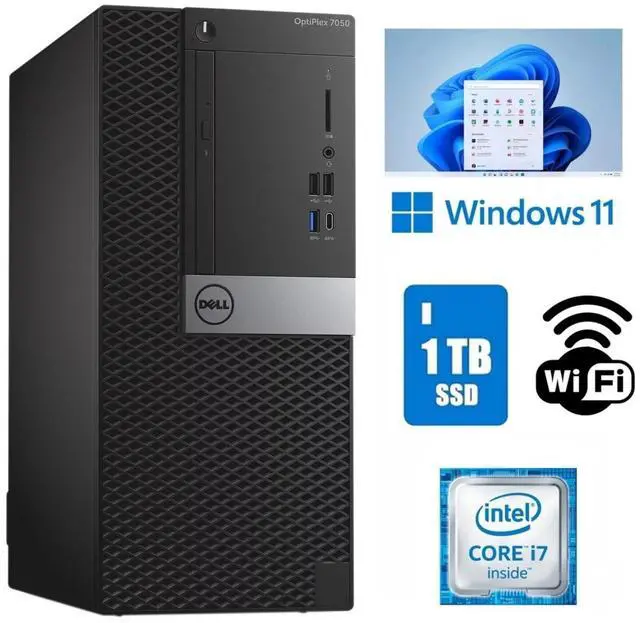 Fast refurbished Dell OptiPlex 7050 Mini Tower computer desktop with Intel Core i7 6th Gen. 32GB Ram 1TB SSD Wi-Fi and fully activated Windows 11 Pro (25H2)