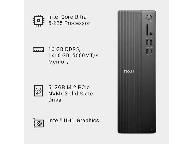 Dell Slim Desktop ECS1250 - Intel Core Ultra 5-225 Processor, Intel UHD Graphics, 16GB DDR5 5600MT/s Memory, 512GB M.2 SSD, 3.0 SD Card Reader, Wired Keyboard and Mouse, Basic Onsite Service