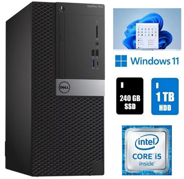 Fast refurbished Dell OptiPlex 7050 Mini Tower computer desktop with Intel Core i5 6th Gen. 16GB Ram 1TB HDD 240GB SSD Wi-Fi and fully activated Windows 11 Pro