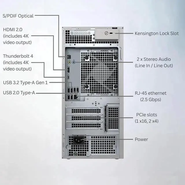 Dual-Monitor Ready Intel Graphics Supports 4K Output multi-display setups for enhanced workflow and multitasking efficiency. 1xHDMI, 1xThunderBolt 4.