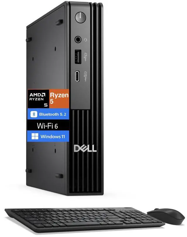 Model: Dell Pro Micro Form/Style: Mini PCProcessor: Zen 4 Gen Ryzen 5 8500GE 3.40GHz Processor (upto 5 GHz, 16MB Cache, 6-Cores, 12-Threads, )Memory: 32GB DDR5 SO-DIMMGraphics: AMD Radeon 740M shared Integrated Graphics, Storage: 4TB PCIe SSD (Solid State Drive)Operating System: Windows 11 Pro-64Display: Connectivity: 802.11ax Wifi, Bluetooth 5.2, RJ-45Ports/Slots:, 2 USB 2.0, HDMI, 1 Display Port, USB 3.2 Type-C, Headphone/Microphone Combo JackInput/Output:, Black, Wireless Keyboard, Wireless Mouse, Battery: 90W PSU, Other Features, Color: BlackWeight: 2.6lbProduct Dimensions (WxLxH): 7.25 IN x 7.9 IN x 1.5 IN1 Year Manufacturer warranty from Velztorm (Professionally upgraded by Velztorm)