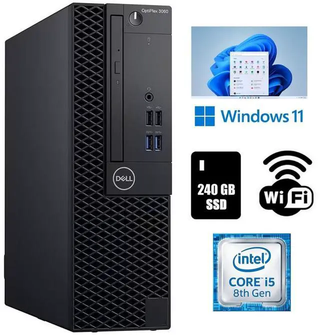 Fast refurbished Dell OptiPlex 3060 Small Form Factor Intel Core i5-8500 Processor 3.0GHz 8Th Generation Desktop Computer with 16GB Ram 240GB SSD Wi-Fi and fully activated Windows 11 Pro.