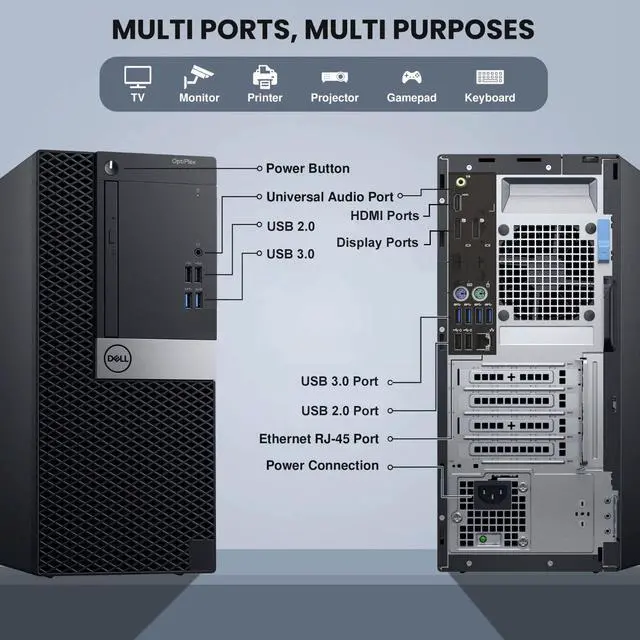The Dell OptiPlex 5050 Tower is a dependable and efficient desktop computer built for office, business, and home use. This refurbished desktop computer delivers reliable performance with Intel processors, making it ideal for everyday multitasking and professional workloads. Designed as a full-size desktop Tower, it offers enhanced security, smooth operation, and long-term usability. With its expandable tower design, this system stands out among professional PC computers as a durable and cost-effective desktop PC for modern work environments.