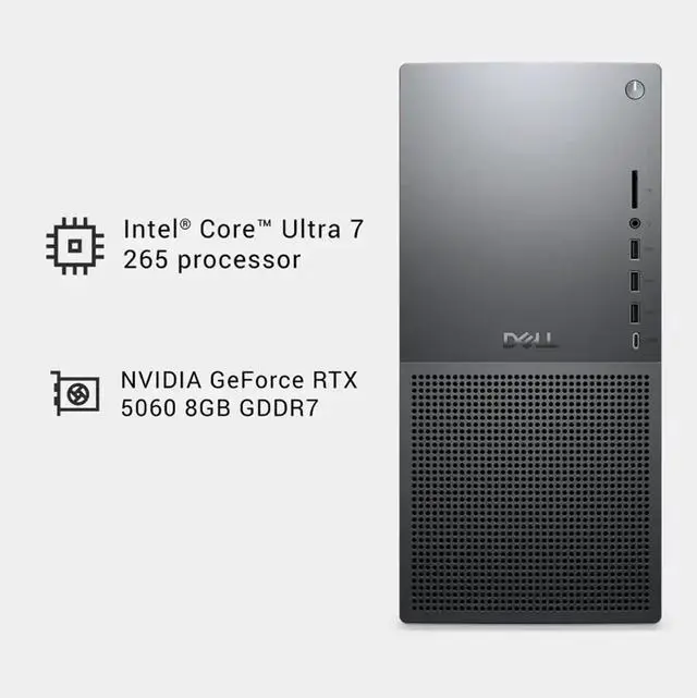 Model: Dell Tower Plus EBT2250Form/Style: TowerProcessor: 15th Gen Ultra 7-265 2.40GHz Processor (upto 5.3 GHz, 30MB Cache, 20-Cores, 20-Threads, 8 Performance-cores)Memory: 32GB DDR5 DIMMGraphics: GeForce RTX 5060 8GB GDDR7 Dual (Integrated+Dedicated) Graphics, VR Ready Storage: 1TB 2230 PCIe SSD (Solid State Drive) + 2TB HDD (Hard Disk Drive)Operating System: Windows 11 Home-64Display: Connectivity: 802.11be, Bluetooth 5.4, RJ-45Ports/Slots:, 4 USB 2.0, 2 HDMI, 3 Display Port, Thunderbolt 4, USB 3.2 Type-C, SD Card Reader, 1 x Headphone/Microphone Combo JackInput/Output:, Black, USB Keyboard, USB Mouse, Battery: 460W PSU, Other Features, Color: BlackWeight: 20.2lbProduct Dimensions (WxLxH): 14.6 IN x 17.6 IN x 7 IN1 Year Manufacturer warranty from Velztorm (Professionally upgraded by Velztorm)