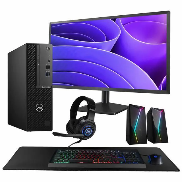Includes Essential Accessories Comes with wired gaming keyboard and mouse, RGB speakers, USB wired RGB headset, oversized mouse pad, and 24" monitor. This professionally refurbished PC has been tested and inspected for quality, reliability, and performance.