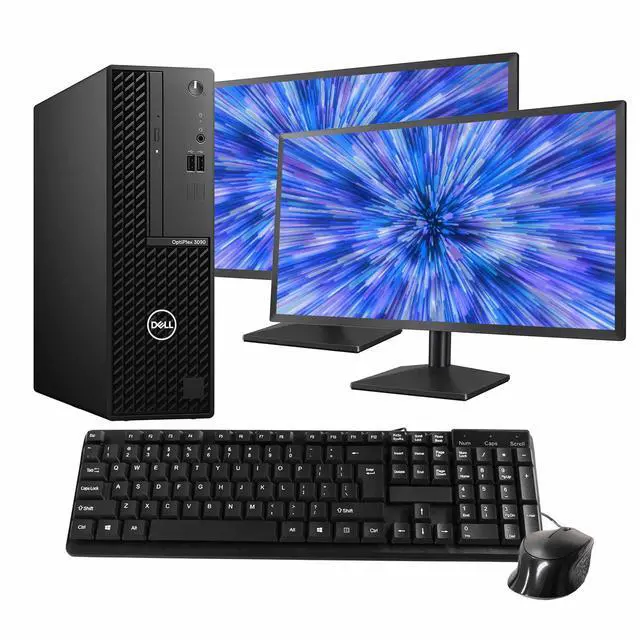 Includes Essential Accessories Comes with new wired keyboard and mouse, and dual renewed 24" monitors. This professionally refurbished PC has been tested and inspected for quality, reliability, and performance.