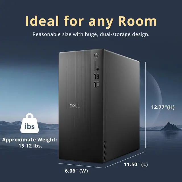The Dell Tower Desktop, featuring an Intel Core Ultra 5 225 processor with integrated Intel UHD Graphics, comes complete with a wired keyboard and mouse for a hassle-free, out-of-the-box experience.