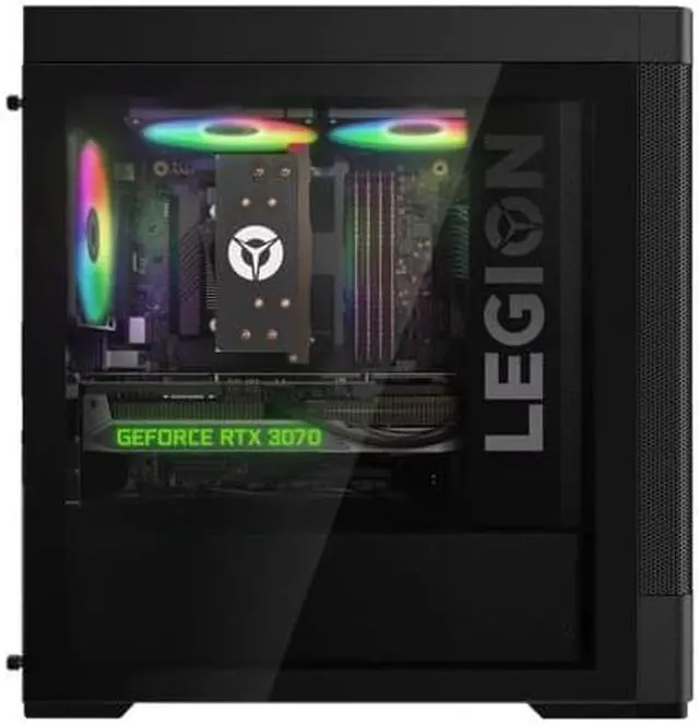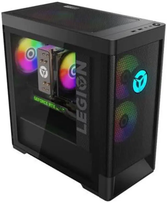 This gaming desktop computer stands out with its clean and sleek design. Encased in a pristine Raven Black shell, it features an LED Legion logo that adds a touch of sophistication. The integrated ARGB lighting allows you to customize the internals with 16 million colors and 12 effects, adding a personal touch to your gaming station.