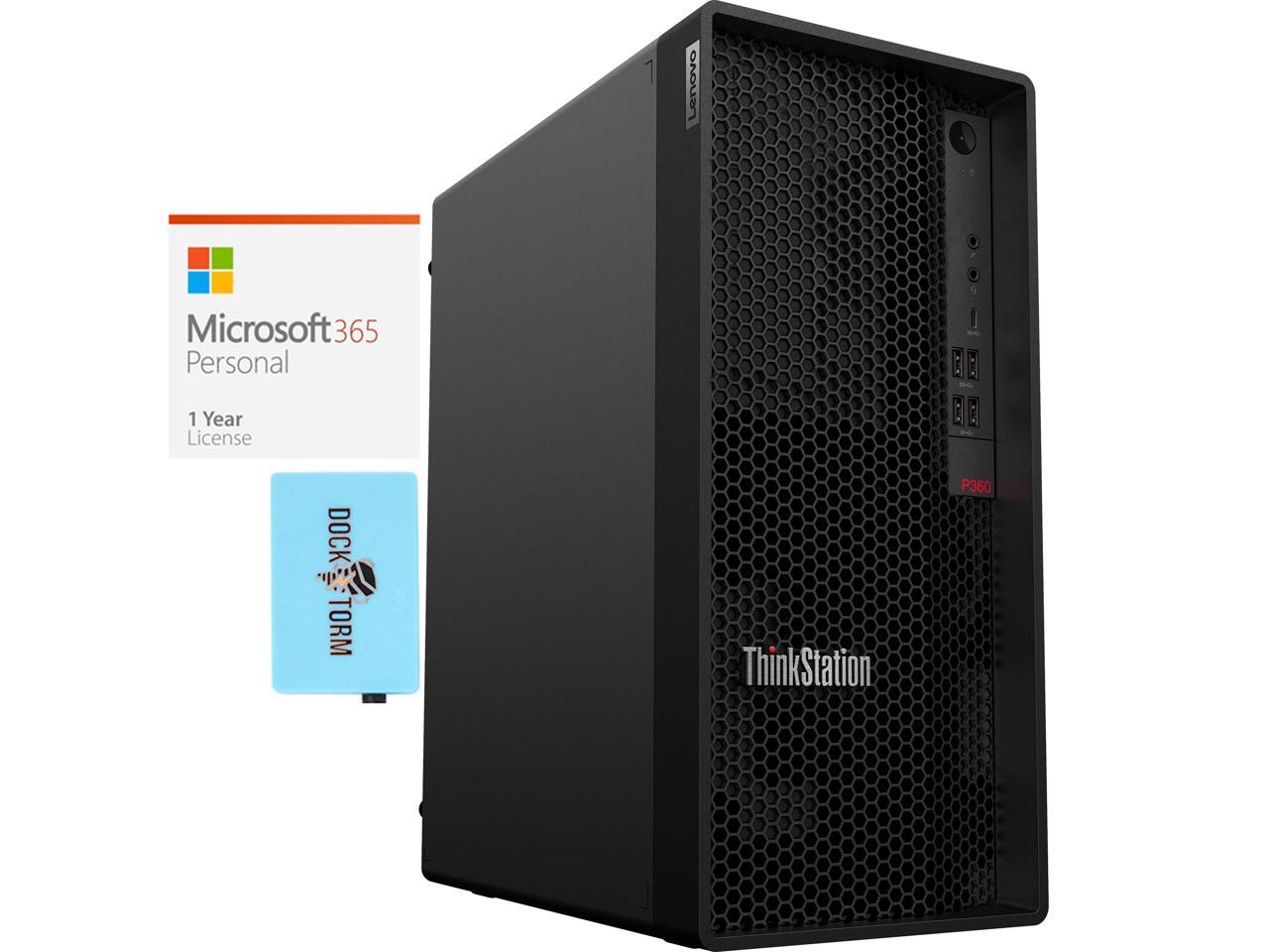 Lenovo P360 Workstation Desktop (Intel i7-12700 12-Core, Intel UHD 770, 16GB DDR5 4800MHz RAM, 1TB PCIe SSD + 2TB HDD (3.5), Wifi, Bluetooth, Win 10 Home) with Microsoft 365 Personal , Dockztorm Hub