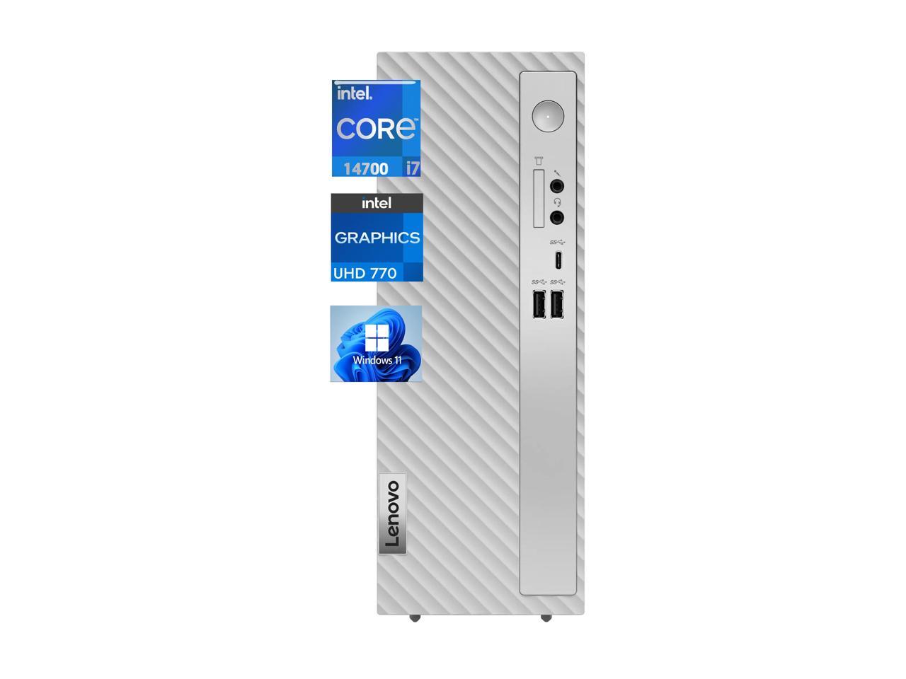 Lenovo IdeaCentre 3i Desktop Compact Tower Intel Core i7-14700 Intel UHD Graphics 770 16GB RAM 1TB SSD USB-A 2.0 USB-A 3.2 USB-C 3.2 HDMI Bluetooth Wi-Fi 6 Mouse & Keyboard Windows 11 Pro Grey