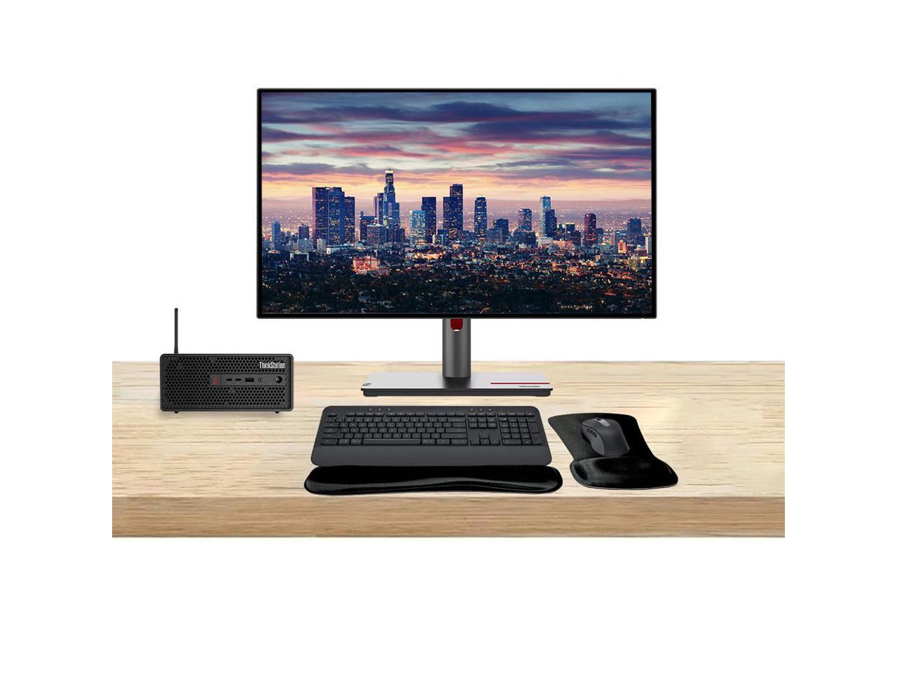 Lenovo ThinkStation P3 SFF i7, 32GB RAM, 1TB SSD, T1000 8GB DDR6 GPU Bundled with Dual ThinkVision P27q 27 2K QHD, MK650 Wireless Keyboard & Mouse, Gel Mouse & Wrist Pad