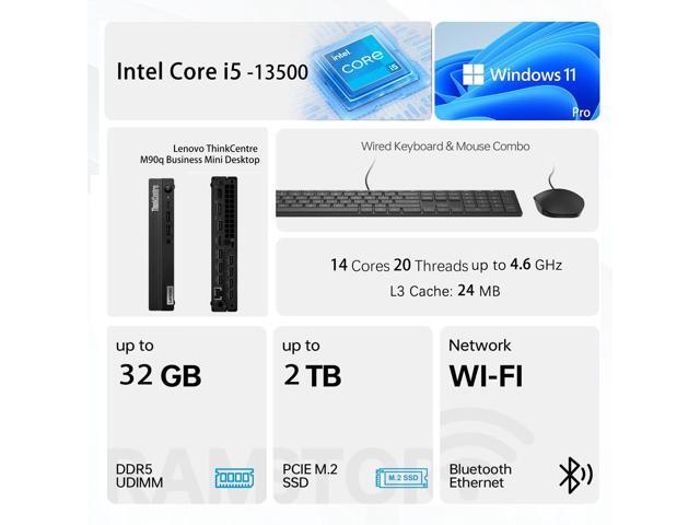 Lenovo ThinkCentre M90q Gen 4 Business Mini Desktop, Intel Core i5-13500, 16GB DDR5, 512GB SSD, 2-Monitor Support 4K, Wired KB & Mouse, Windows 11 Pro, Black