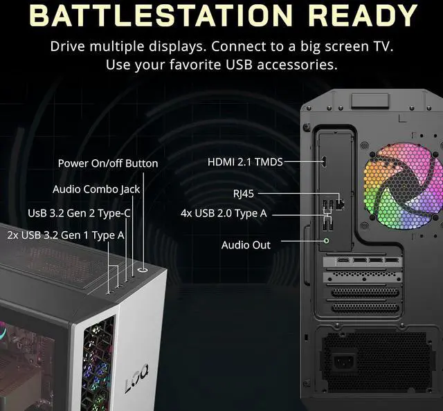 ARGB Cooling Fans: A 26L chassis with addressable RGB lighting and optimized airflow delivers efficient cooling with bold gaming style.