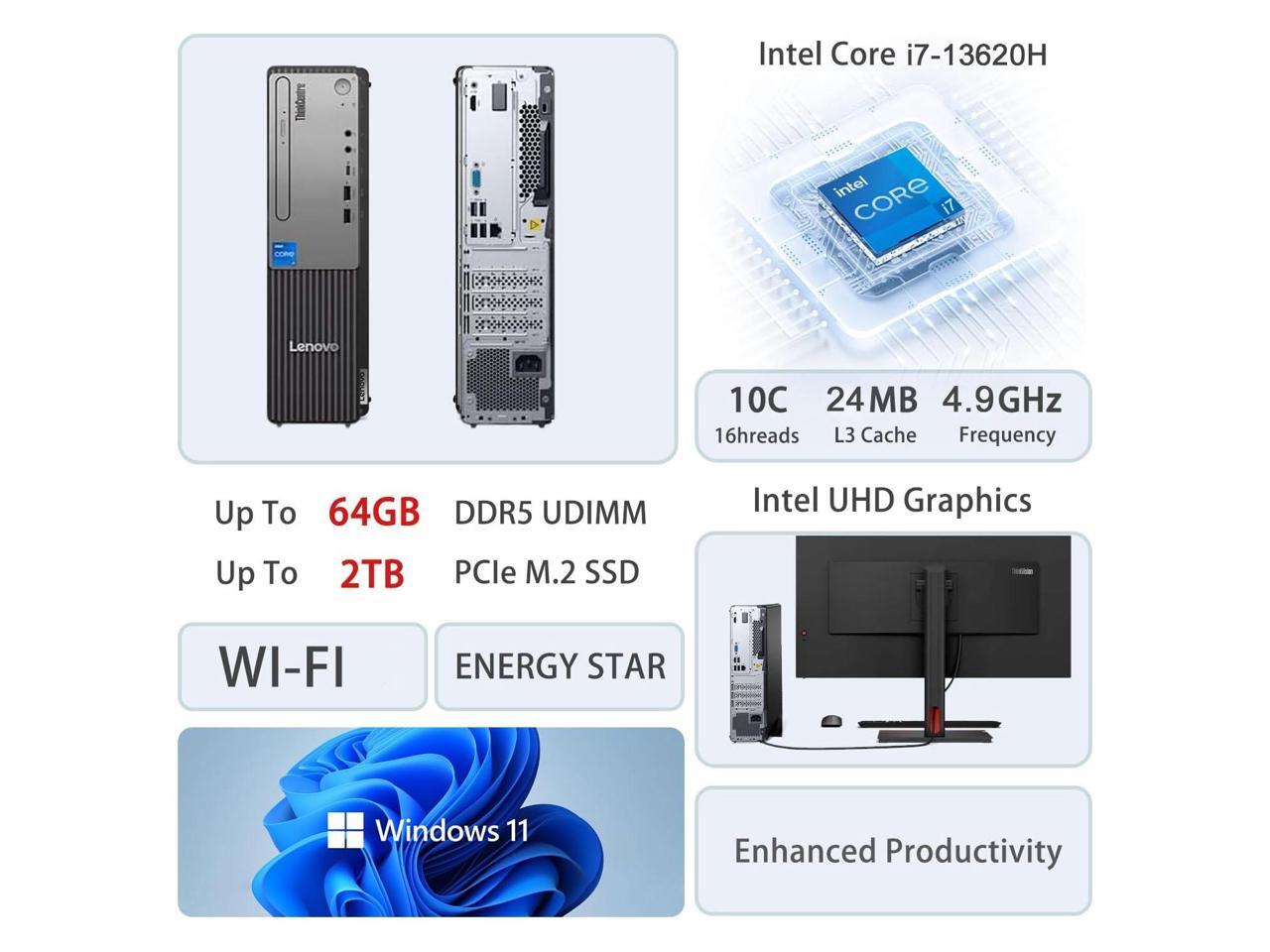 Lenovo ThinkCentre Small Form Factor Business Desktop, Intel Core i7-13620H, 16GB DDR5, 1TB SSD, Wired KB & Mouse, Windows 11 Pro, Black