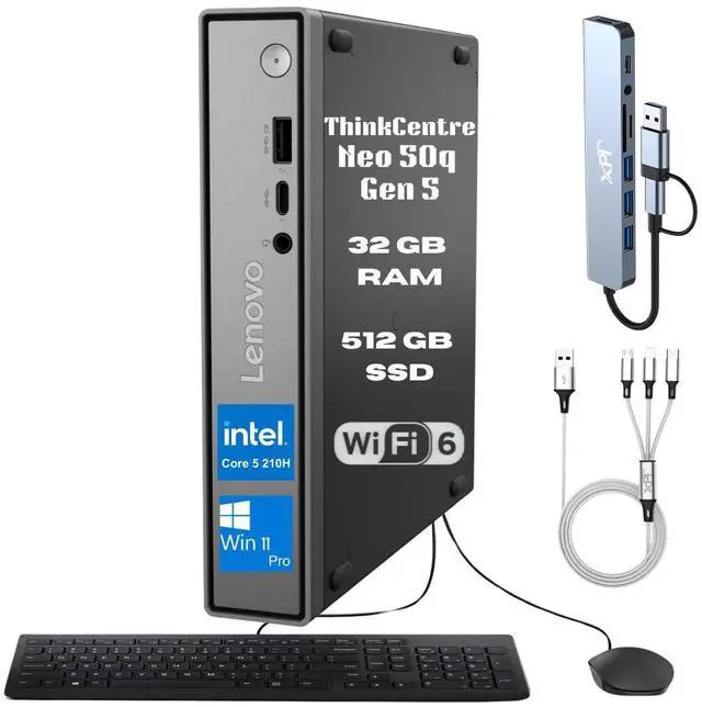 NEW LENOVO THINKCENTRE NEO 50Q GEN 5 HOME BUSINESS STUDENT MINI MICRO TINY DESKTOP PC 2026 INTEL CORE 5 210H PROCESSOR 32GB DDR5 RAM 512GB PCIE SSD WIFI 6 KEYBOARD MOUSE VERTICAL STAND WINDOWS 11 PROFESSIONAL WARRANTY