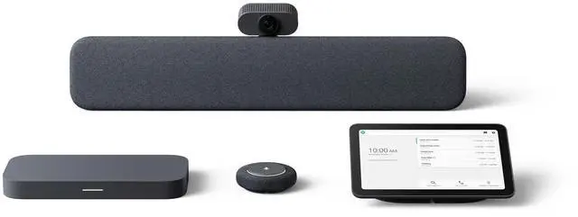 on your need: small, medium, or large rooms. The Google Meet Series One room kits from Lenovo are comprehensive and ready out of the box. Each kit includes a computer system with custom mounting options, plus a combination of up to six other componentswhich vary by room size. Components include a smart camera or smart camera XL, a remote control or touch controller, up to two mic pods, and a smart audio bar (plus an add-on audio bar in the large room kit).
