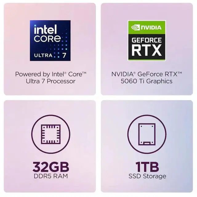 Graphics: NVIDlA GeForce RTX 5060 Ti graphics with 8 GB GDDR7