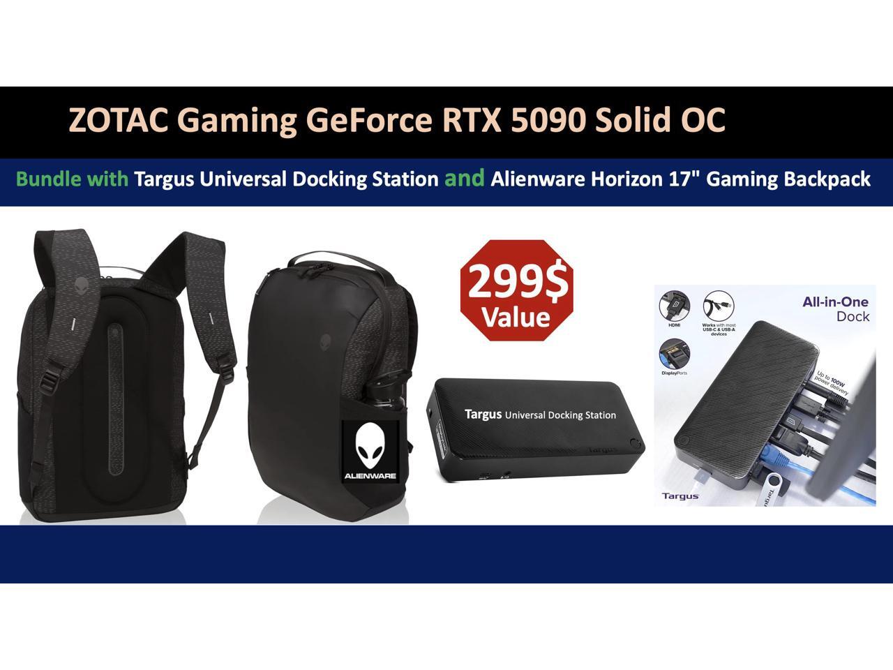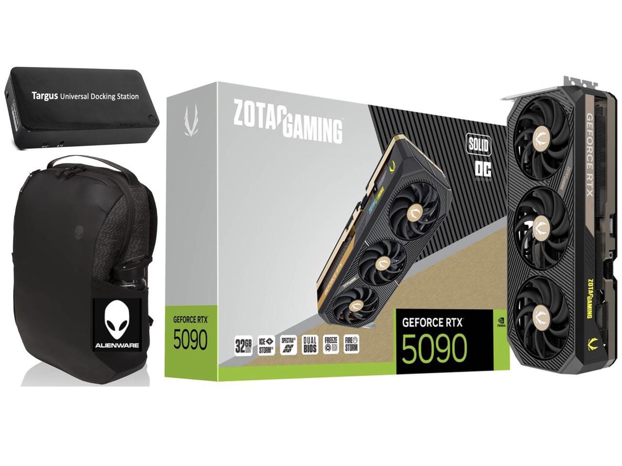 ZOTAC Gaming GeForce RTX 5090 Solid OC 32GB GDDR7, Engine Clock 2422 MHz, Reinforced Metal Mid-Frame, IceStorm 3.0 Advanced Cooling. Bundle with Targus dockstation and Backpack Alienware.