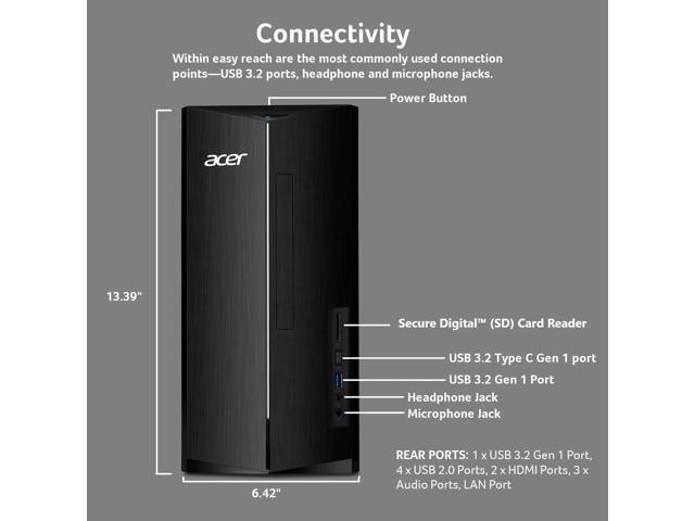 Acer Aspire Desktop|14th Gen Intel Core i5-14400 Processor|32GB DDR5|2TB SSD|Wi-Fi 6|Bluetooth|Intel UHD Graphics|2 x HDMI|Dual Monitor Capable| Windows 11 Pro