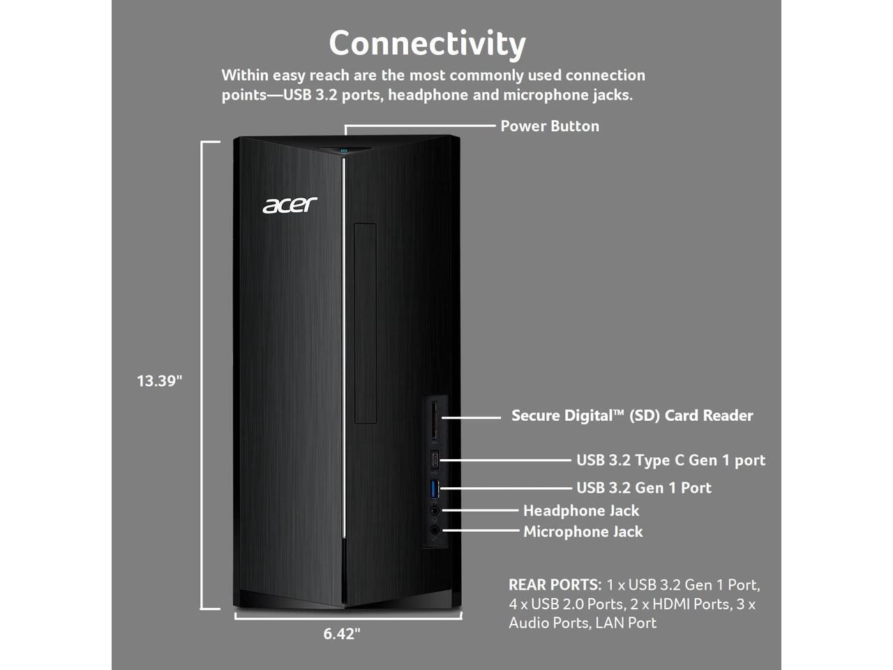 Acer Aspire Desktop|14th Gen Intel Core i5-14400 Processor|32GB DDR5|2TB SSD Plus 1TB HDD|Wi-Fi 6|Bluetooth|Intel UHD Graphics|2 x HDMI|Dual Monitor Capable| Windows 11 Pro
