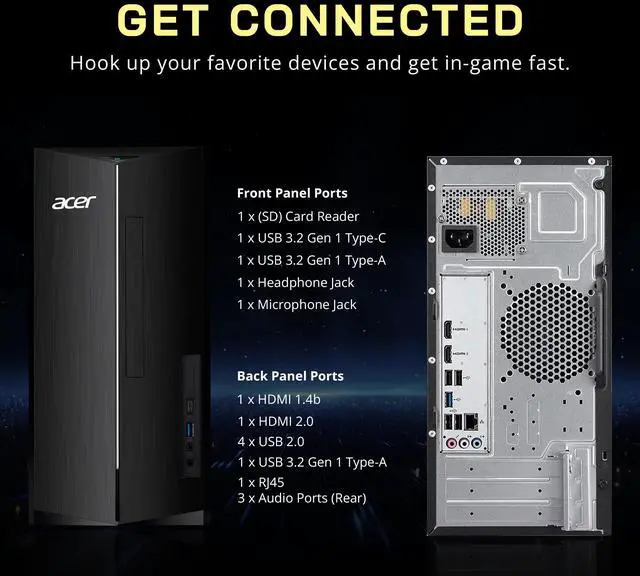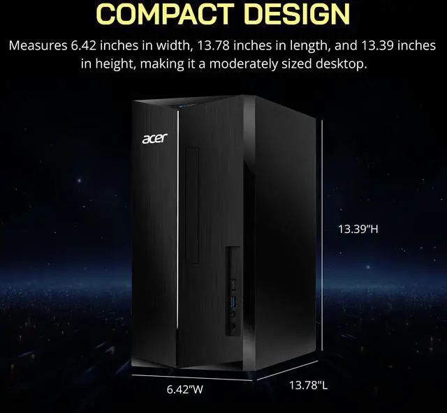 The Acer Aspire Desktop combines the Intel Core i5-14400 processor for strong multitasking performance, Intel UHD Graphics 730 for smooth 4K visuals, and a reliable keyboard and mouse for a complete, ready-to-use setup.