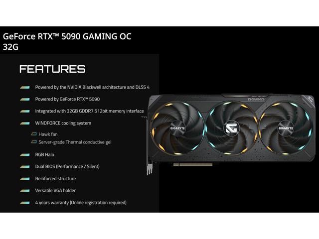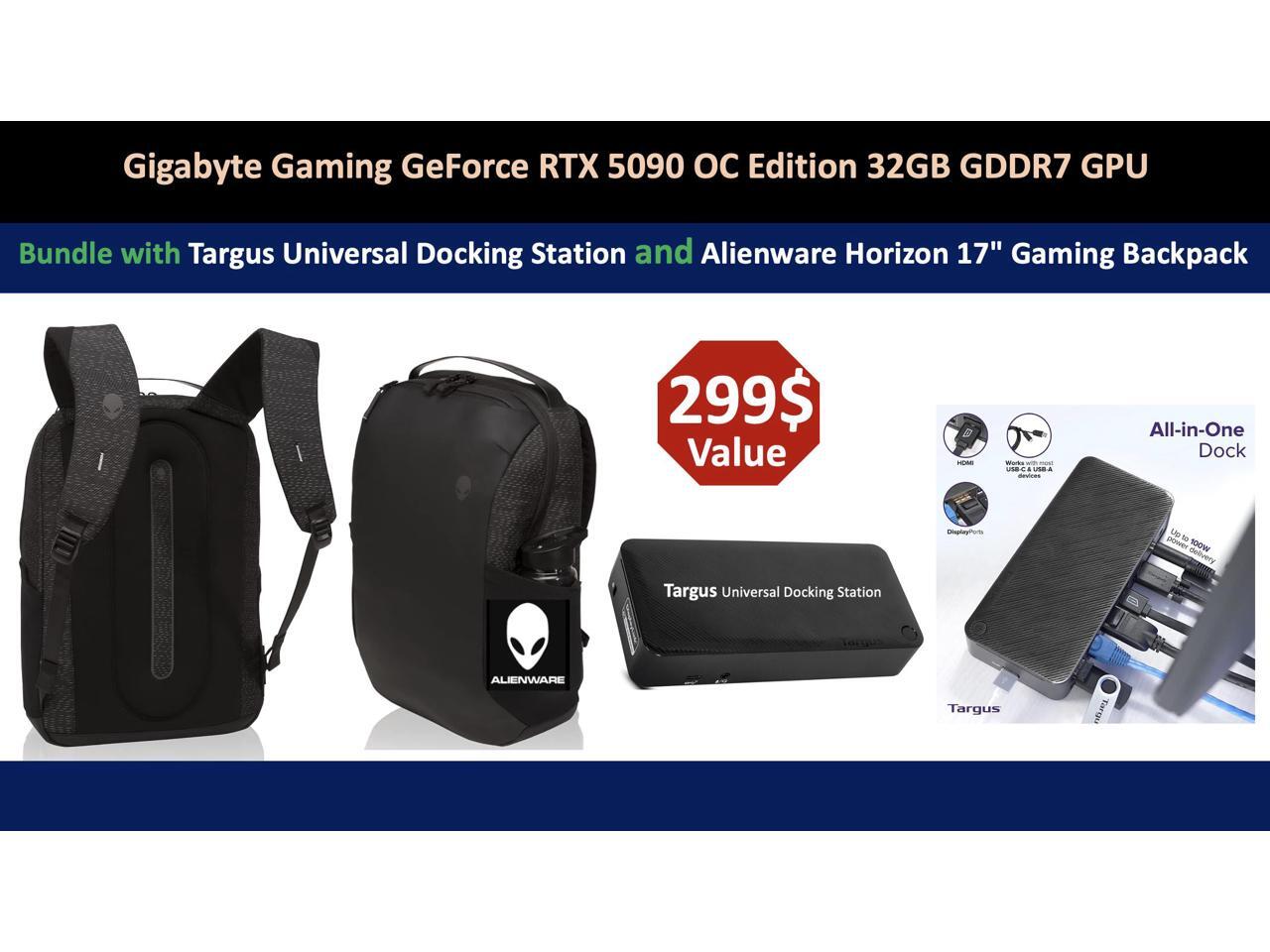 GIGABYTE Gaming GeForce RTX 5090 OC Edition 32GB GDDR7, 2550 MHz (Ref. Card : 2407MHz), Clock 28 Gbps, Memory Bus 512 bit, Resolution 7680x4320, Bundle with Targus Dock Station and Backpack Alienware