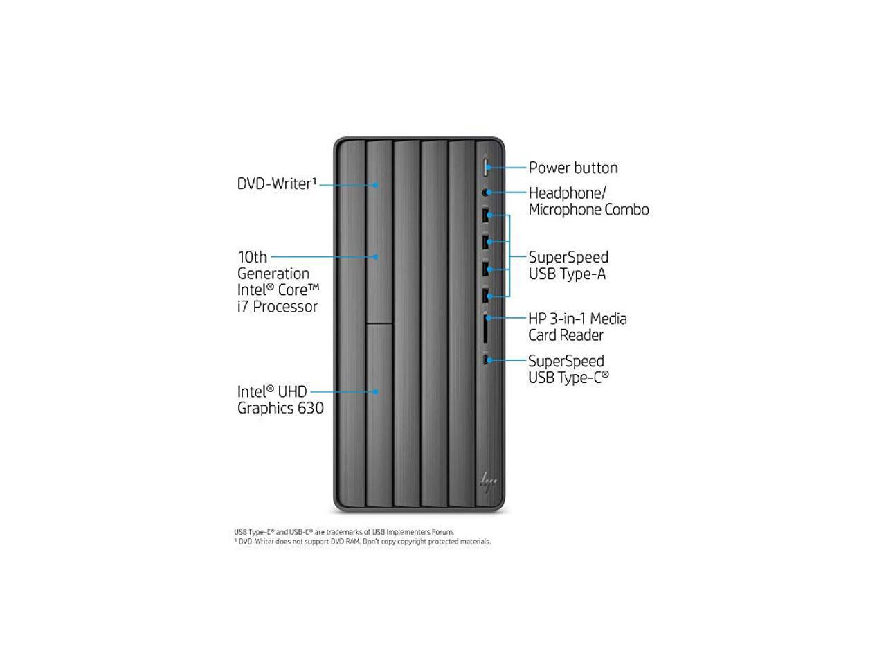 HP Envy TE01-1177c Desktop Computer (9ED93AA) - 10th Gen Intel Core i7-10700F up to 4.7 GHz CPU, 32GB DDR4 SDRAM, 512GB PCIe SSD + 1TB HDD, NVIDIA_GeForce GTX 1660 Super, DVD-Writer, Windows 10 Home