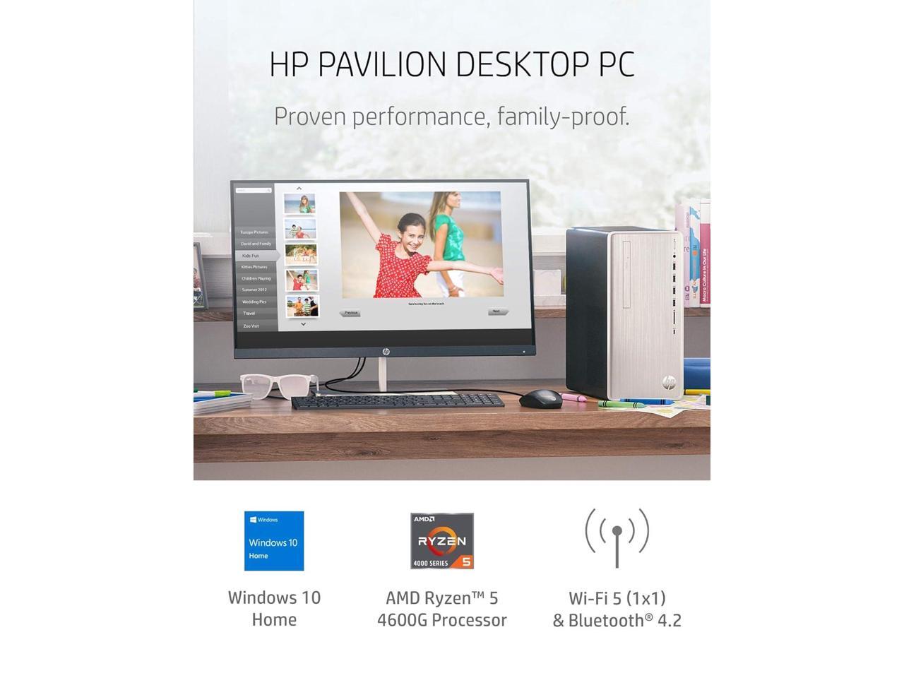 HP Pavilion Desktop PC, AMD Ryzen 5 4600G Processor 6-core with Radeon Graphics, 12 GB DDR4-3200 SDRAM, 512 GB HD - Windows 10 Home, Multi-Display Capable, 5.1 Surround Sound (TP01-1140) (1J7L8AA#ABA)
