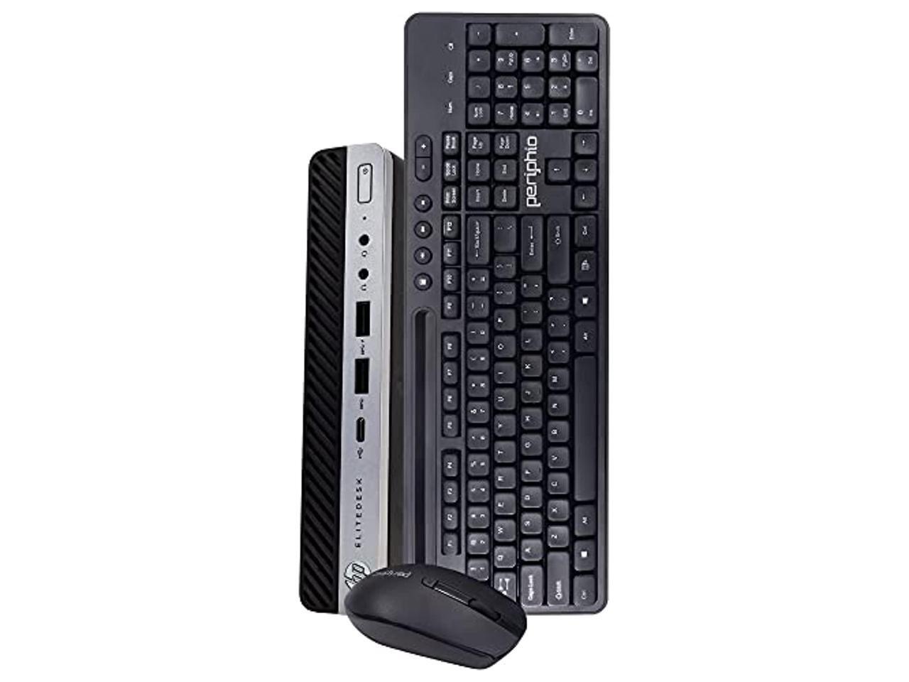HP EliteDesk 800G3 Micro Desktop Computer PC, Intel Quad Core i5, 16GB RAM, 512 GB SSD, Windows 10 Pro, Periphio Wireless Keyboard and Mouse, WiFi (Renewed)
