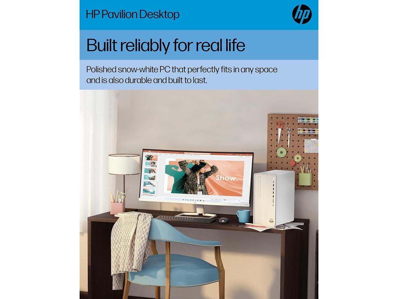 HP Pavilion Desktop Computer, Intel Core i7-12700 Processor, Intel UHD Graphics 770, 12 GB RAM, 512 GB SSD, Windows 11 Home (TP01-3070, Snow White) (318B3AA#ABA)