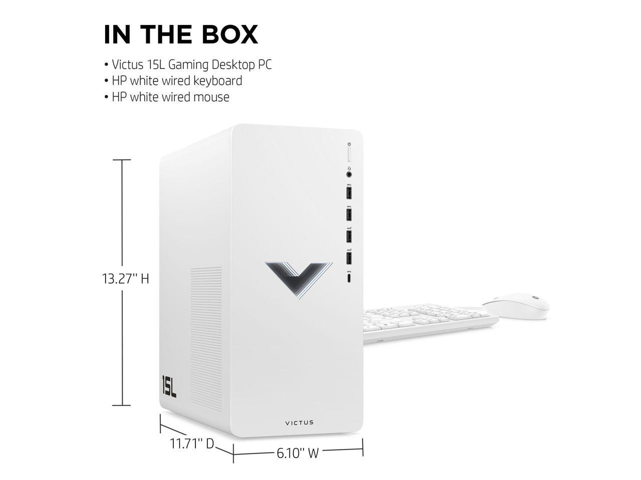HP Victus 15L Gaming Desktop PC, AMD Ryzen 5 5600G, AMD RX6400, 8GB RAM, 512GB SSD, Ceramic White, Windows 11 Home, TG02-0093w