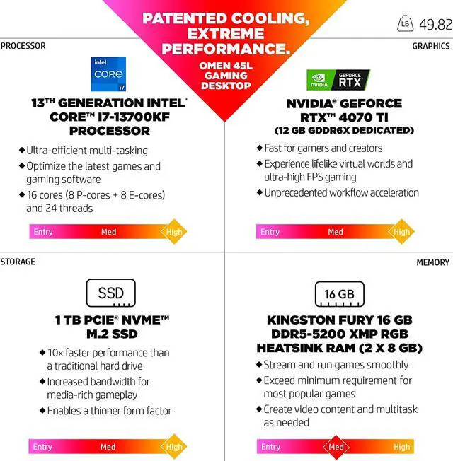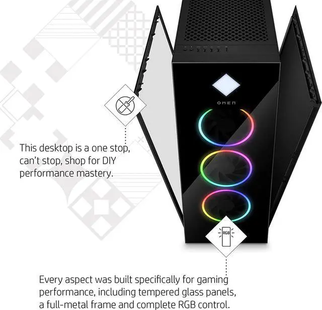 OMEN CRYO CHAMBER - Experience revolutionary cooling from the patented OMEN CRYO CHAMBER cooling system that enables the liquid cooler radiator to channel fresh, cold air from the surrounding environment to cool down the CPU