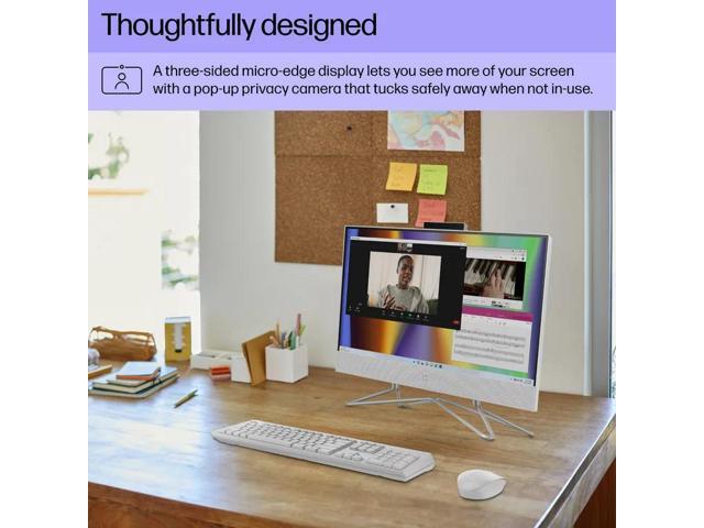 - The HP All-in-One PC lets you tackle your busiest days and save everything you love with the performance of a reliable Intel Pentium Silver Processor and abundant storage. With Intel UHD graphics, you can smoothly stream 4K content and play your favorite games. Plus, a three-sided micro-edge display lets you see more of your screen with a pop-up privacy camera that tucks safely away when not in use.