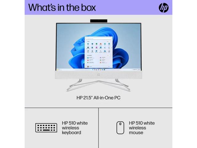 HP 21.5" All-in-One PC, Intel Pentium Silver J5040, 8GB SDRAM, 128GB SSD, Snow White, Windows 11 Home in S mode, 22-dd0143w Desktop Computer
