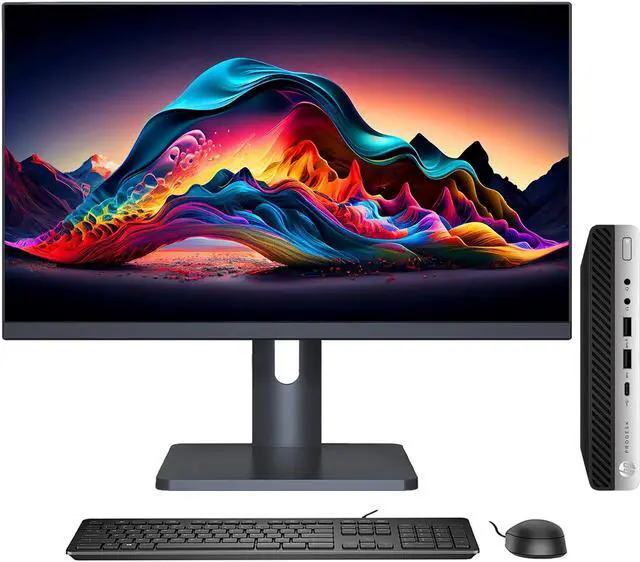 Package Content: Hp ProDesk 600 G4 Desktop Mini PC, New 27 inch Full HD Monitor, New Wireless Keyboard & Mouse, USB Wi-Fi Adapter and Power Cord.
