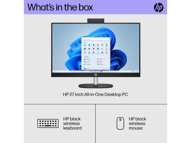 HP 27 inch All-in-One Desktop PC, AMD Ryzen 7 7730U, 12GB RAM, 1TB SSD, Jet Black, Windows 11 Home, 27-cr0023w Computer