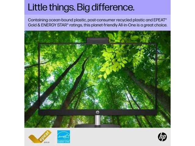 - This All-in-One is built with all the features to keep you connected like a tiltable pop-up privacy camera, HP Video Controls, dual array microphones and advanced noise reduction technology. With a powerful AMD processor, ample storage, speedy connections and plenty of memory, you're all set to take on any day. Immerse yourself in whatever you are doing with an ultra-slim three-sided micro-edge display and up to a 90% screen-to-body ratio for enhanced viewing. Plus, no need to compromise PC productivity or your eco-friendly attitude. With the planet friendly design consisting of post consumer recycled plastics, recovered ocean-bound plastics, and being EPEAT Gold Registered and ENERGY STAR Certified, you can do right by the planet and feel good about your purchase.
