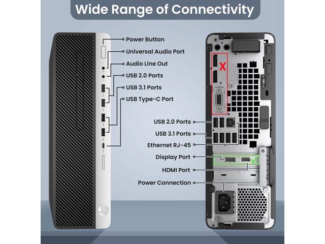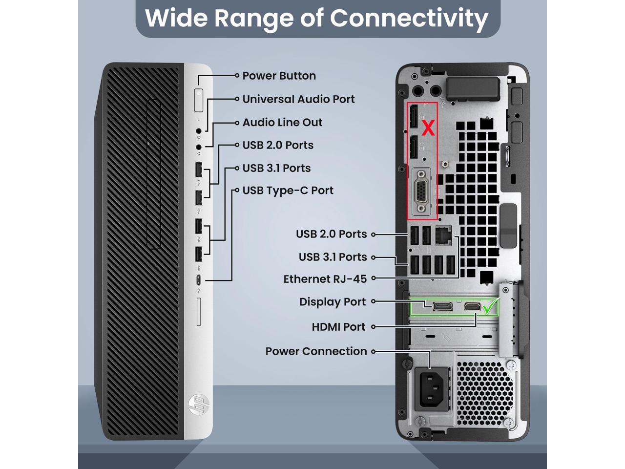 - This high-speed computer PC comes with DisplayPort Ports that supports 4K display, audio ports for audio output and USB 3.0 ports that allows data transfer at accelerated speed.